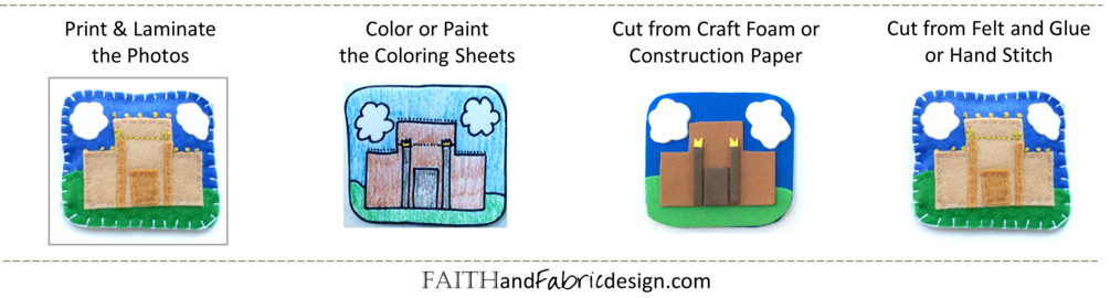 • cutting out the templates and piecing together, using construction paper and glue, craft foam and glue, felt and fabric glue or felt and embroidery floss and hand sewing
